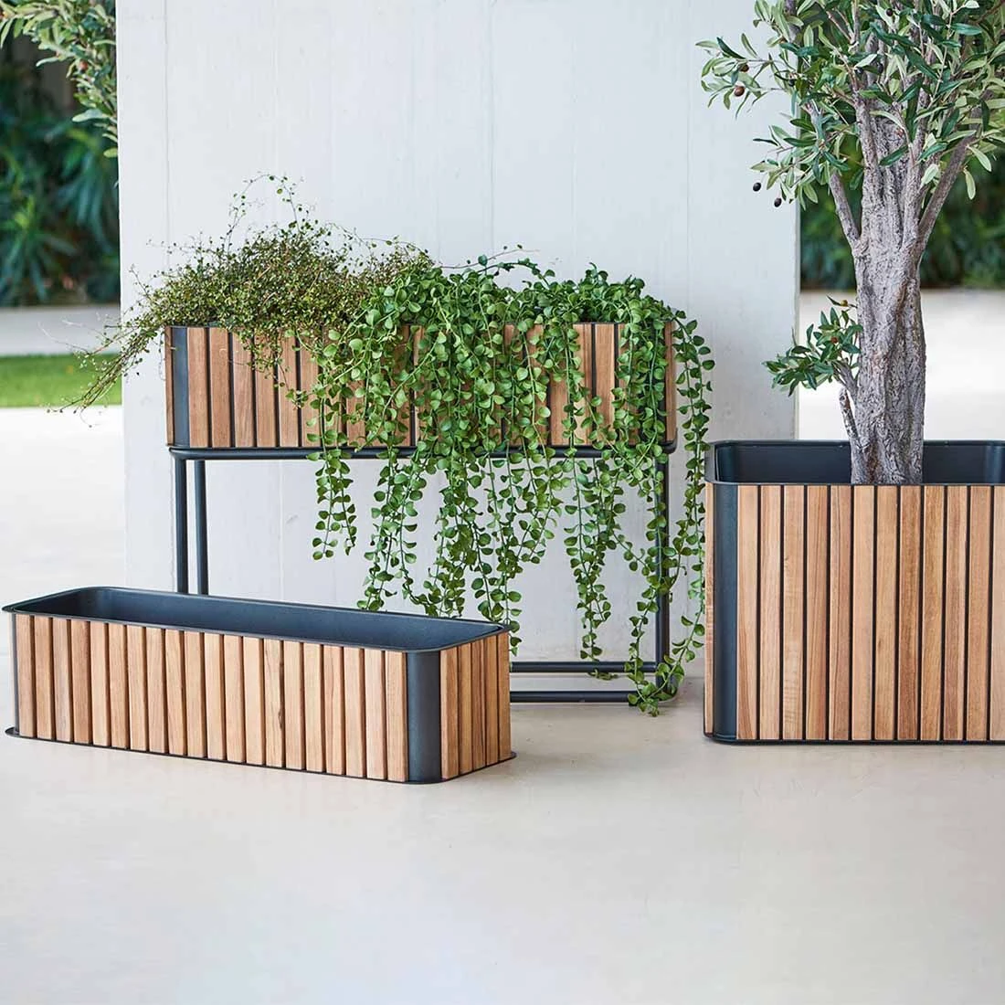 Cane-Line Combine Pflanzgefäß 83x62x28cm Teak/Alu Natur/Lava Grey