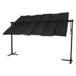 Der kompakte Balkonschirm Act von Doppler sorgt auch auf begrenztem Raum für angenehmen Schatten. Seit 1946 produziert der österreichische Hersteller Doppler Schirme für alle Wetterlagen. Das große Sortiment an Sonnenschirmen steht dabei dem Regenschirmsortiment in nichts nach! Das beweist einmal mehr der Balkonschirm Act! Ein weiteres interessantes Feature dieses Sonnenschirms ist die Höhenverstellbarkeit des Schirmstocks. Mast 32mm, Unterstock 29 mm beträgt der Durchmesser des Schirmstocks. Das runde Schirmdach des Balkonschirms Act beträgt eine Größe von 200 cm im Durchmesser. Strapazierfähiges Polyester wurde für die Bespannung des Schirmdachs gewählt. Der Schirmmast wurde aus Aluminium gefertigt. Die helle und freundliche Farbgestaltung des Balkonschirms gibt dem Sonnenschirm einen dezent-klassischen Look. Der Schirmmast ist im Farbton silber gefertigt.