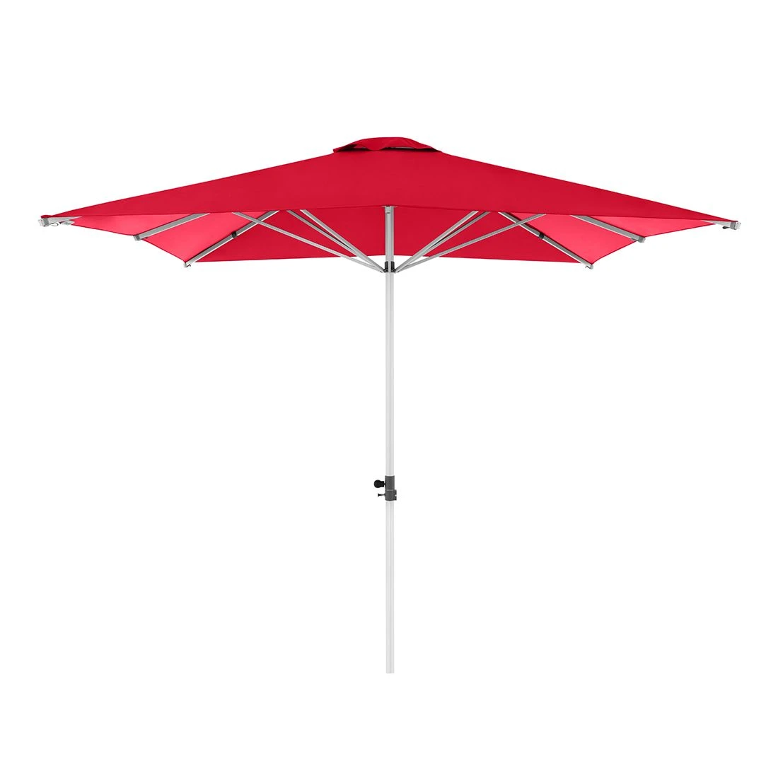 Ein fleckschutzimprägnierter Polyesterbezug mit hoher Lichtechtheit und UV-Schutz 80 ergänzt das hochwertige Schirmgestell. Dank einer Teleskopautomatik ist das Versetzen von Möbeln unter dem Schirm beim Öffnen und Schließen nicht notwendig.