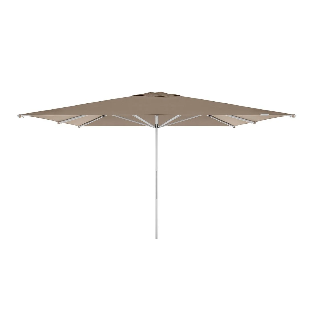 Ein fleckschutzimprägnierter Polyesterbezug mit hoher Lichtechtheit und UV-Schutz 80 ergänzt das hochwertige Schirmgestell. Dank einer Teleskopautomatik ist das Versetzen von Möbeln unter dem Schirm beim Öffnen und Schließen nicht notwendig.