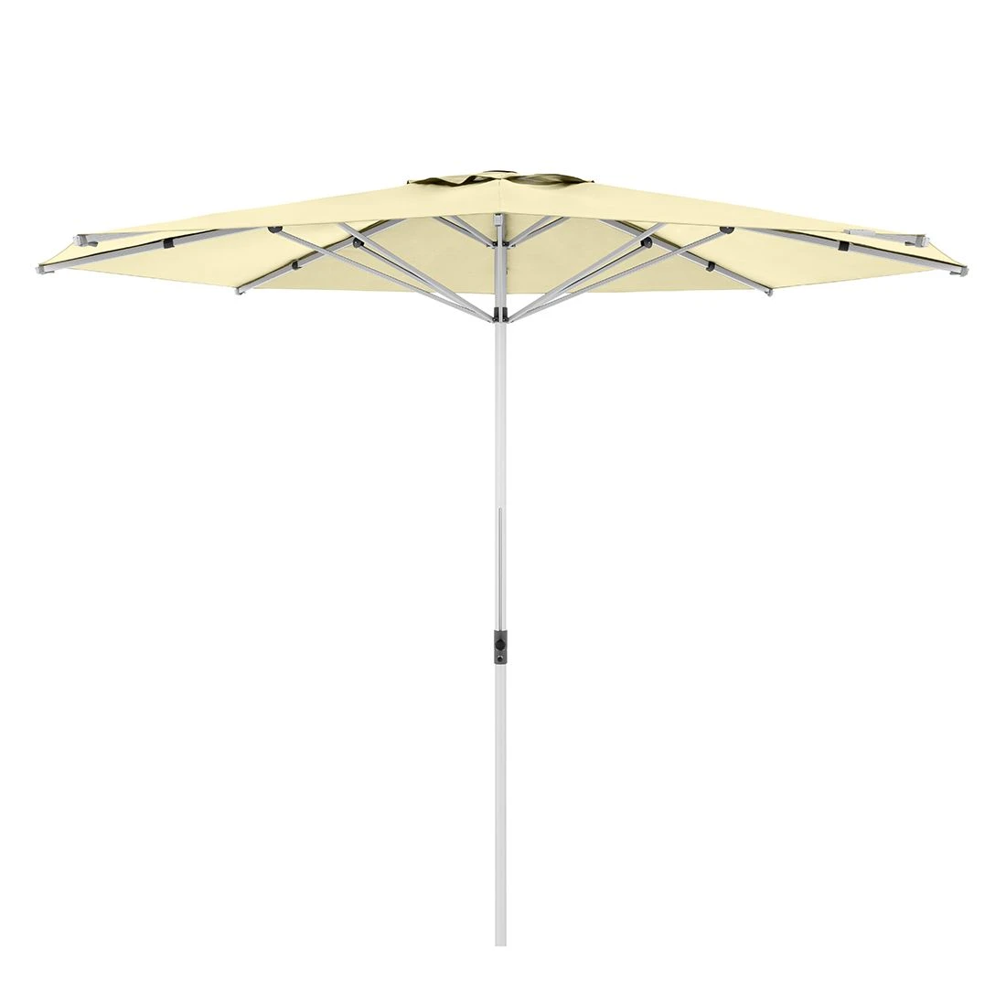 Ein fleckschutzimprägnierter Polyesterbezug mit hoher Lichtechtheit und UV-Schutz 80 ergänzt das hochwertige Schirmgestell. Dank einer Teleskopautomatik ist das Versetzen von Möbeln unter dem Schirm beim Öffnen und Schließen nicht notwendig.