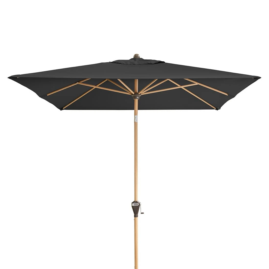 Die Neigung des Schirmdaches erfolgt per Kurbel. Nach Öffnen des Schirmdachs kann durch Weiterdrehen mittels der Kurbel die Dachneigung stufenlos eingestellt werden.