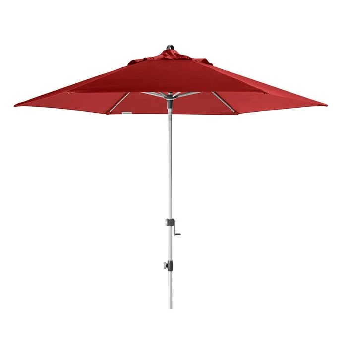 Das Schirmgestell besteht aus leichtem, aber dennoch sehr robustem Aluminium. Massive Streben halten das Schirmdach aus hochwertigem Polyester (UV 80). Der Bezugsstoff ist wasserabweisend, die Bedienung erfolgt mittels einer leichtgängigen Kurbel.
