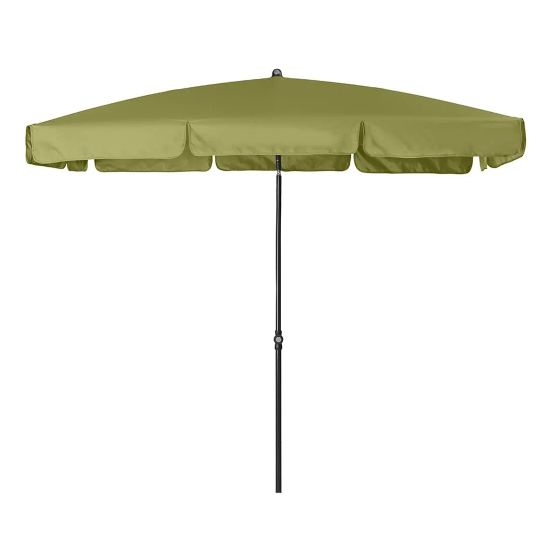 Mithilfe eines rutschfesten Schiebers mit Druckknopf, sowie dem Handrad für stufenloses Höhenverstellen ist ein müheloses Bedienen gewährleistet. Der Bezug ist für diese Schirmgröße mit Volant versehen und besteht aus fleckschutzimprägniertem, wasserdichten und verrottungsfreiem Polyester-Spezialgewebe. Außerdem ist der Bezug wetterbeständig, hat eine hohe Lichtechtheit und einen starken UV-Schutz von 80.