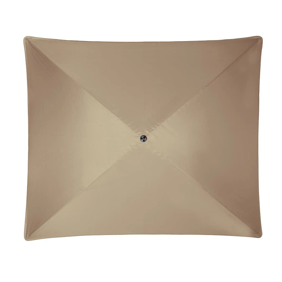 Mithilfe eines rutschfesten Schiebers mit Druckknopf, sowie dem Handrad für stufenloses Höhenverstellen ist ein müheloses Bedienen gewährleistet. Der Bezug ist für diese Schirmgröße ohne Volant versehen und besteht aus fleckschutzimprägniertem, wasserdichten und verrottungsfreiem Polyester-Spezialgewebe. Außerdem ist der Bezug wetterbeständig, hat eine hohe Lichtechtheit und einen starken UV-Schutz von 80.