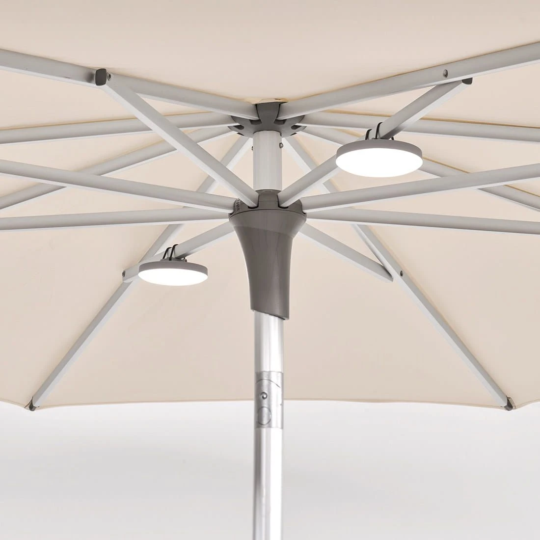 Mit dem Glatz OSYRION Spot Akku-Licht 2er-Set kreieren Sie unter Ihrem Schirm bis zu 10 Stunden eine gemütliche und einladende Atmosphäre. Dabei lassen sich die Spots mittels mitgelieferten Gummibändern (3 Größen) an den Dachstreben einfach befestigen. Das Einstellen der 5 verschiedenen Helligkeitsstufen erfolgt mittels Fernbedienung.