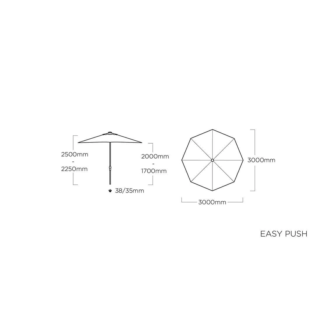 Kettler Easy Push Stockschirm Ø300cm Aluminium/Polyester Silber/Hellgrau Meliert