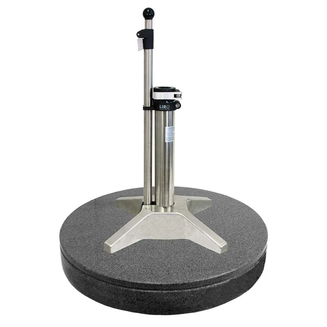 Der Rollensockel lässt sich anhand eines ausziehbaren Bedienhebels, ähnlich einem Wagenheber nach oben heben. Dadurch erhalten die Rollen einen Freilauf. Kleinere Rillen oder Unebenheiten im Boden sind keine Hürde für den LiRo. Im abgesenkten Zustand bietet der Schirmständer durch die große Auflagefläche eine großartige Standfestigkeit.