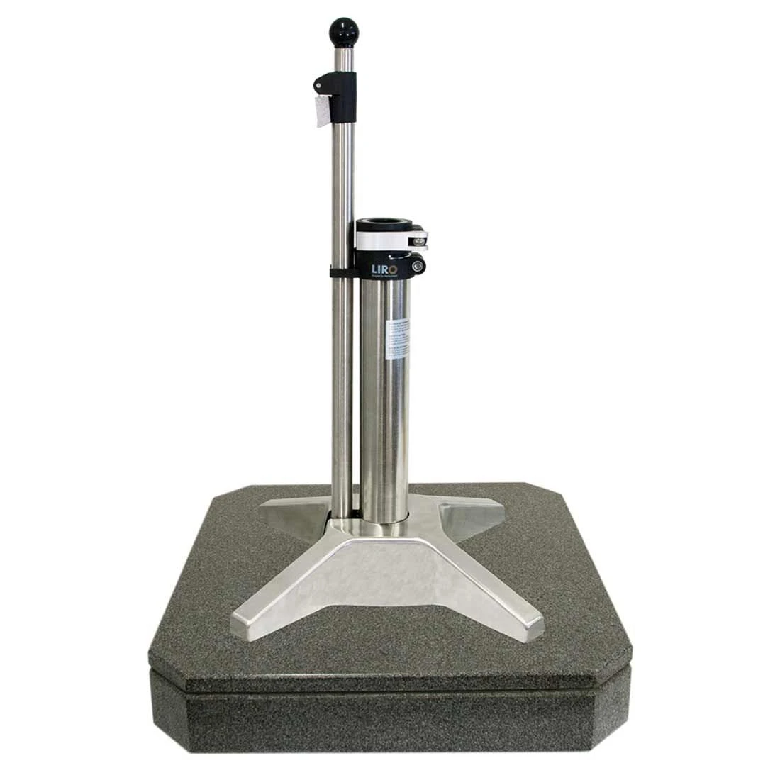 Der Rollensockel lässt sich anhand eines ausziehbaren Bedienhebels, ähnlich einem Wagenheber nach oben heben. Dadurch erhalten die Rollen einen Freilauf. Kleinere Rillen oder Unebenheiten im Boden sind keine Hürde für den LiRo. Im abgesenkten Zustand bietet der Schirmständer durch die große Auflagefläche eine großartige Standfestigkeit.