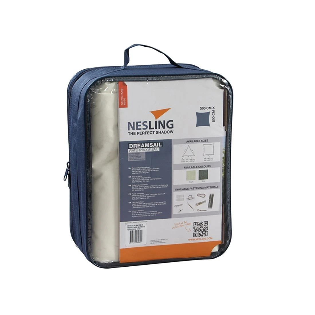Das Sonnensegel benötigt während der Sommersaison und auch bei Wind keinen besonderen Schutz. Das Gewebe ist leicht zu reinigen. Während der Wintermonate empfehlen wir eine Demontage und Einlagerung an einem geschützten Ort. Nesling bietet eine 3-jährige Garantie auf das Polyester-Tuch.