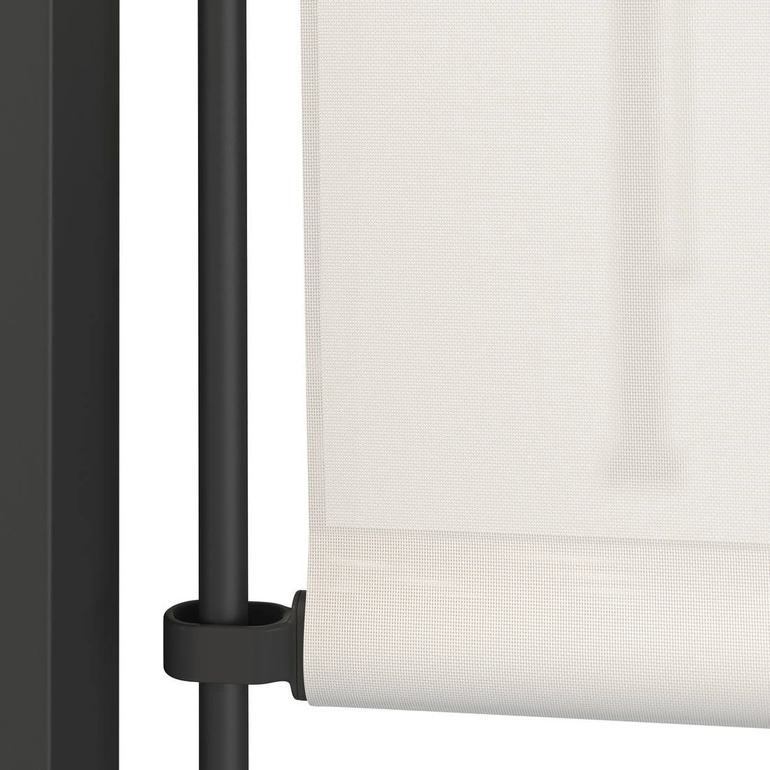 Gefertigt ist das stabile Gestell aus schwarzem Stahl. Dieses Material ist überaus wetterbeständig und daher ideal, um im Outdoor-Bereich eingesetzt zu werden. Für die optimale Beschattung verfügt die OUTLIV. Pergola über breite Lamellen, die sich mithilfe des weißen Stoffdachs überdecken lassen.