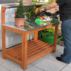 Habau Pflanztisch Mit Verzinkter Arbeitsplatte Holz/Blech Braun